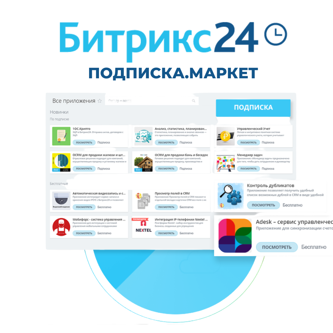 Подписка на Маркет позволяет использовать любое количество приложений из более чем 1000 доступных в каталоге Битрикс24.Маркет - интеграции с соцсетями, отчеты, готовые отраслевые CRM, шаблоны сайтовустанавливайте столько приложений, сколько вам нужно!