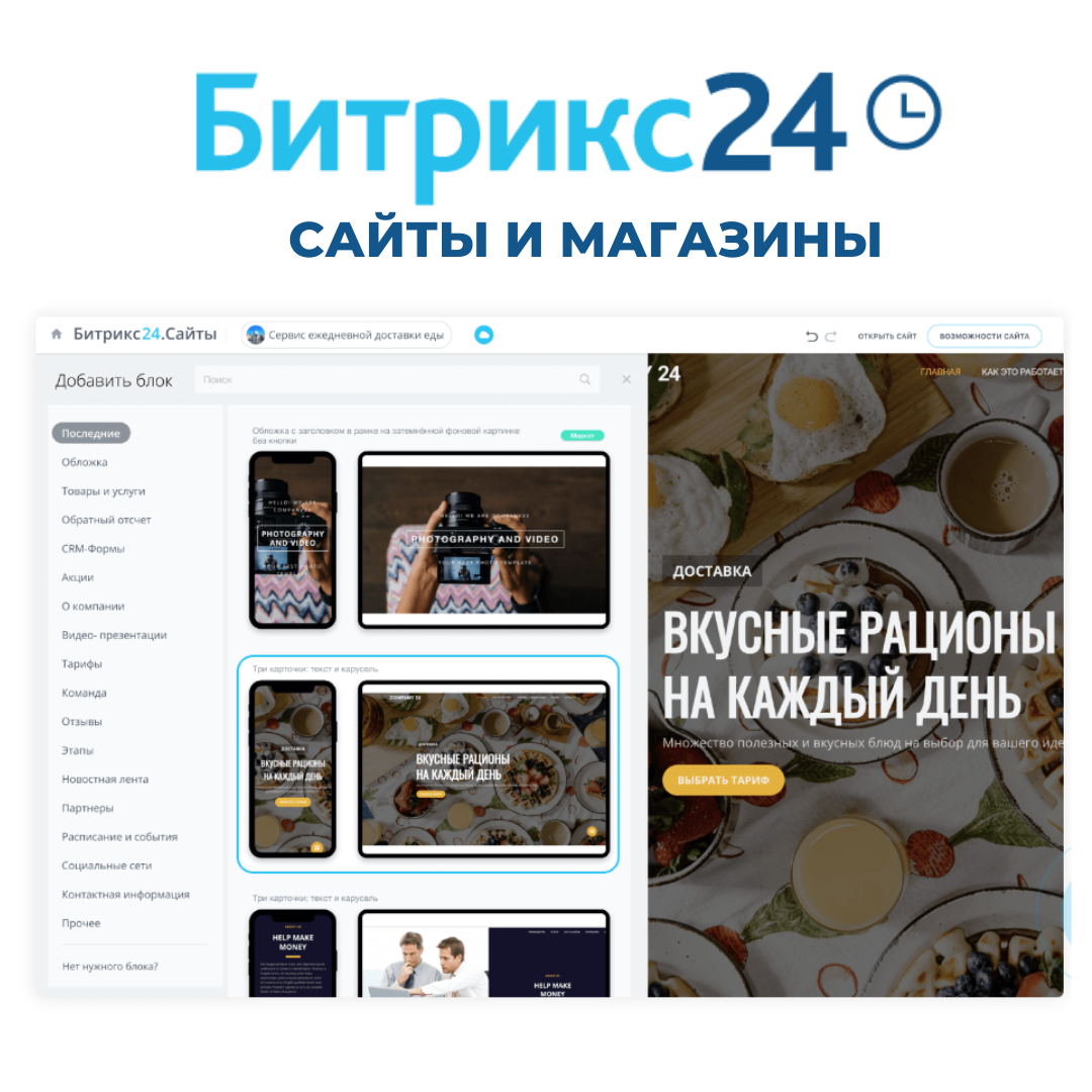 Битрикс24.Сайты позволяют создавать сайты в удобном конструкторе. На сайте уже есть онлайн-чат, обратный звонок, форма заявки. Сайт не нужно специально интегрировать с CRM, он создается внутри нее. Битрикс24.Магазины поможет создать адаптивный магазин с витриной товаров из вашей CRM. Добавьте товары в каталог, разместите ссылку на магазин в соцсетях и принимайте заказы.